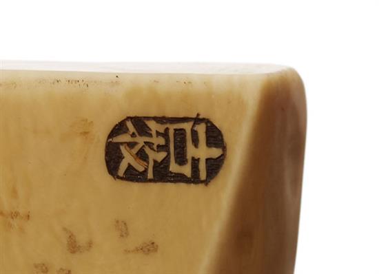 AN EARLY 20TH CENTURY JAPANESE CARVED IVORY TUSK WITH SIGNATURE