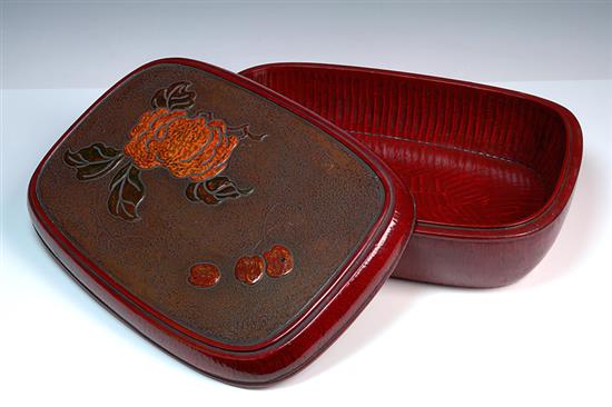 FOUR BOXES, including three lacquer boxes and a nest of seven containers, the largest of graduated set measures 36cm x 12cm