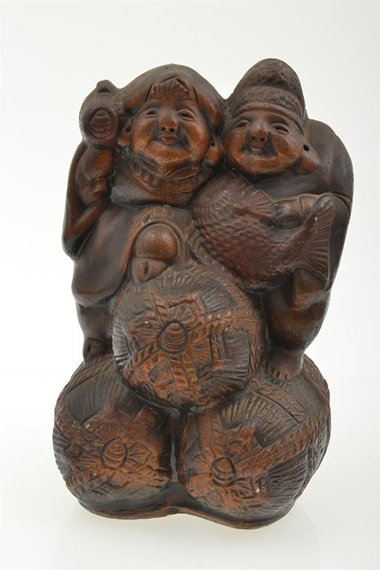THREE PORCELAIN FIGURES, including eagle, Hirado porcelain sake pourer and figure of Daikoku The eagle, 27.5cm high