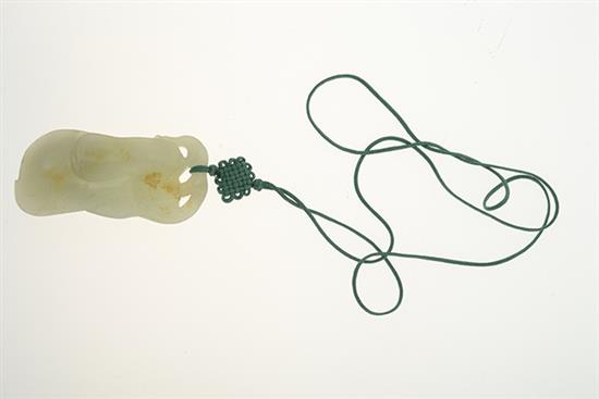 THREE JADEITE PENDANTS, including bamboo, mushroom and a double gourd. The gourd 7.8 m long