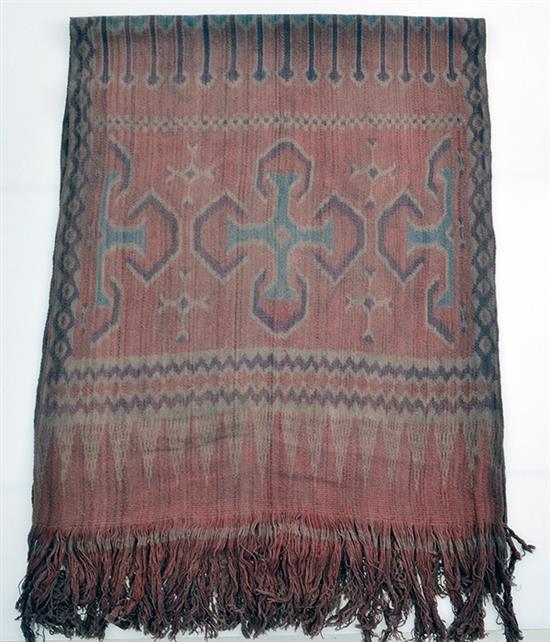 A COLLECTION OF TEXTILES, including Toraja tribe Ikat, Lombok Island weaving, Nias sleeping blanket, Riau islands beaded and embroidered sheet and Sumba island back strip loom woven cloth. The ikat 342 x 66cm