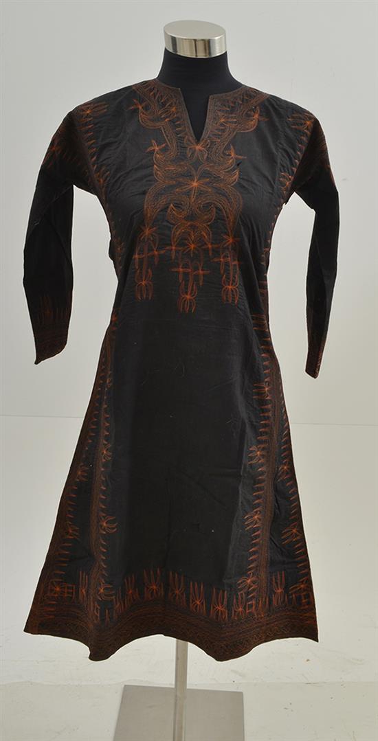 A NIAS ISLAND TREE BARK JACKET, WARRIORS HEAD GEAR AND SUMATRAN MATRON'S DRESS, the jacket 54.5cm long