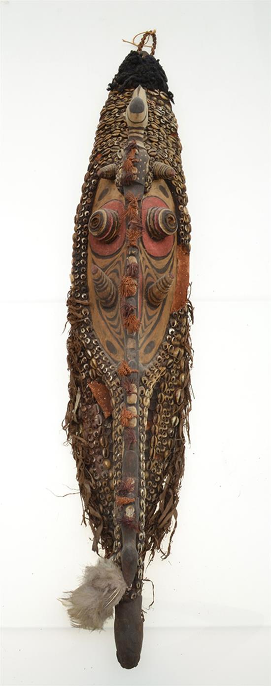 AN IATMUL MWAI MASK, MIDDLE SEPIK RIVER, 20th century, elongated nose ending with a small birds head, minor wood damage on side as v...