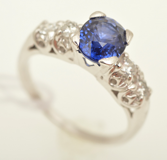 A SAPPHIRE AND DIAMOND RING