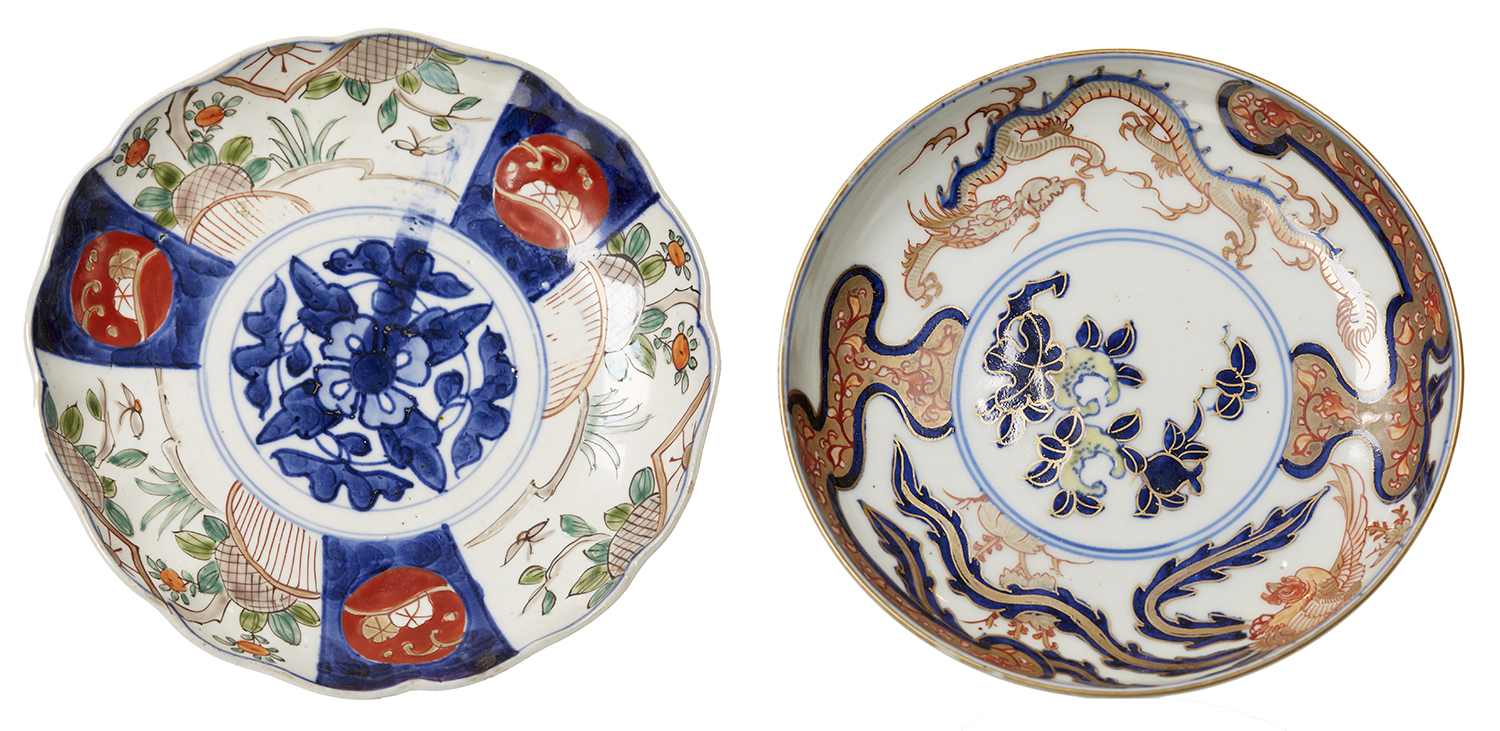 TWO MEIJI PERIOD KUTANI VASES, TOGETHER WITH MEIJI PERIOD EXPORT IMARI PLATE AND 19TH CENTURY IMARI PLATE WITH PERSIMMON MOTIFS
