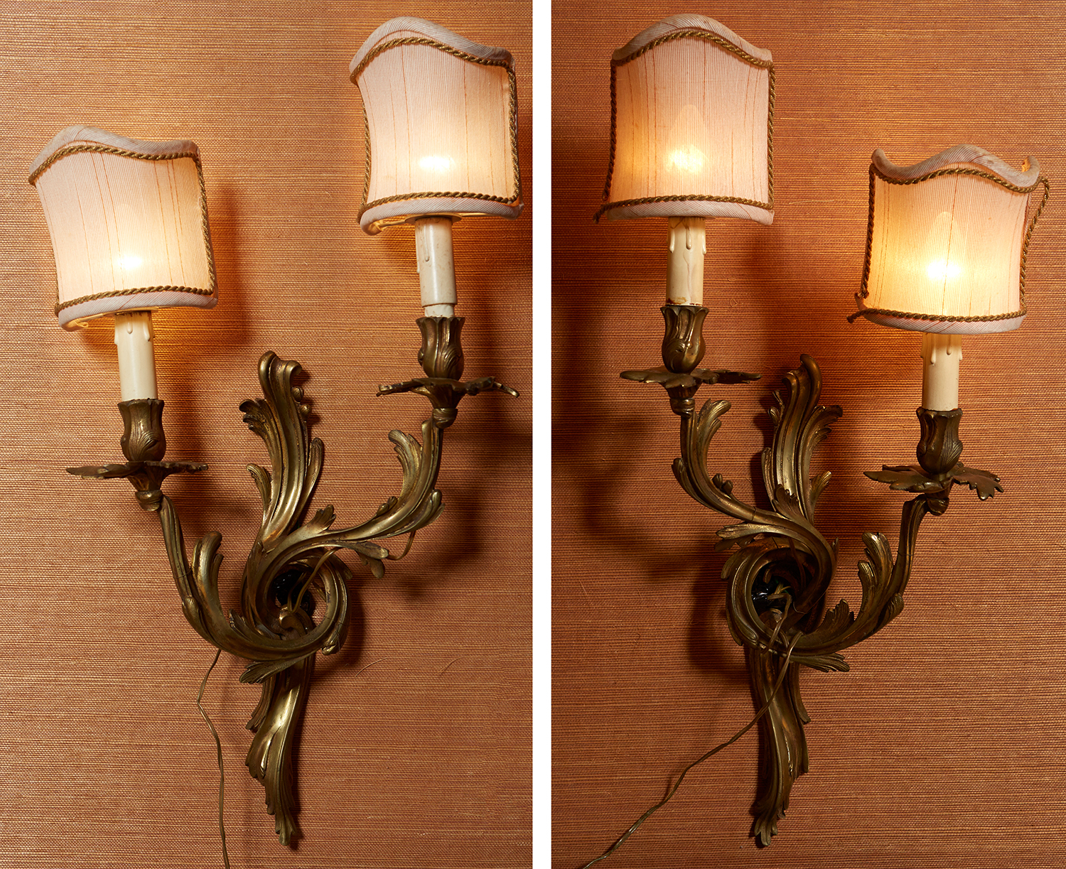 A PAIR OF FRENCH 19TH CENTURY ORMOLU TWIN BRANCH WALL SCONCES