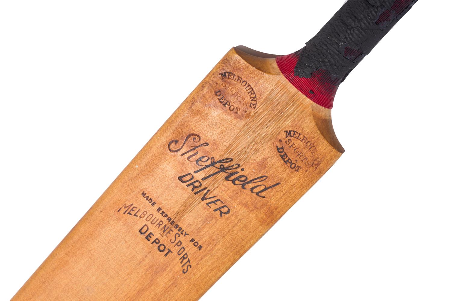 1947-48 CRICKET BAT SIGNED BY AUSTRALIA & INDIA TEAMS, WITH 31 SIGNATURES INCLUDING DON BRADMAN, LINDSAY HASSETT, RAY LINDWALL, KEITH MILLER, LALA ARMANATH & VIJAY HAZARE. DON BRADMAN SCORED 715 RUNS AT AN AVERAGE OF 178.5.