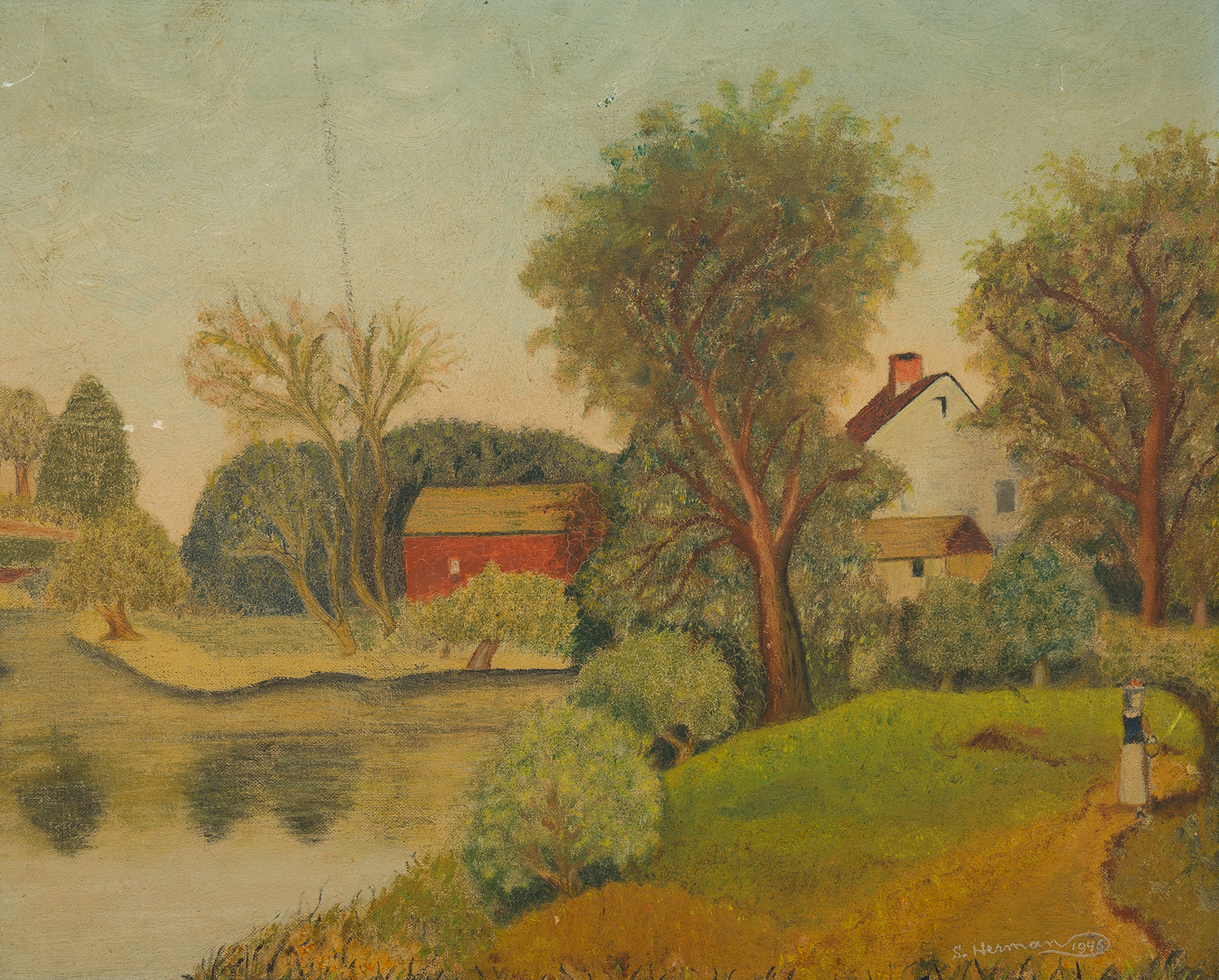 CHARLES BLACKMAN (born 1928) Boy in the Bush 1954 enamel paint on board