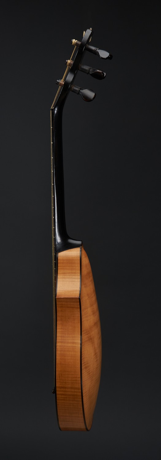 With ebonised string inlay to edges. Incised maker's mark to headstock.