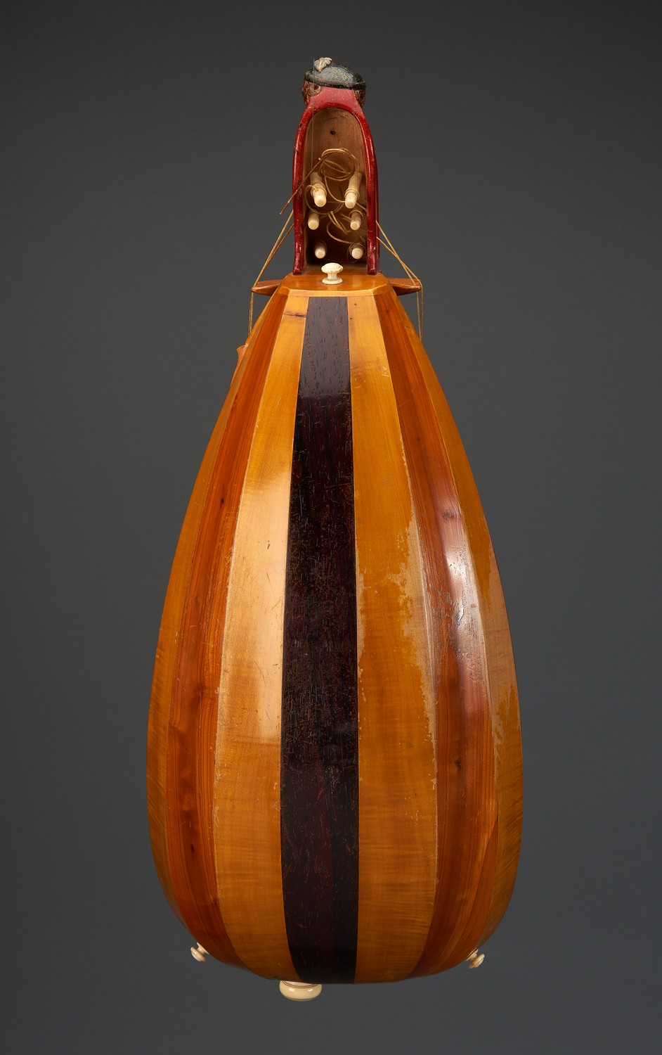 The whole decorated in polychrome floral decoration with a carved female head emanating from peg head. With bone inlay. Stamped 'POUGET / ARDENTES / INDRE / 1876'. In original case Contains Brazilian Rosewood.