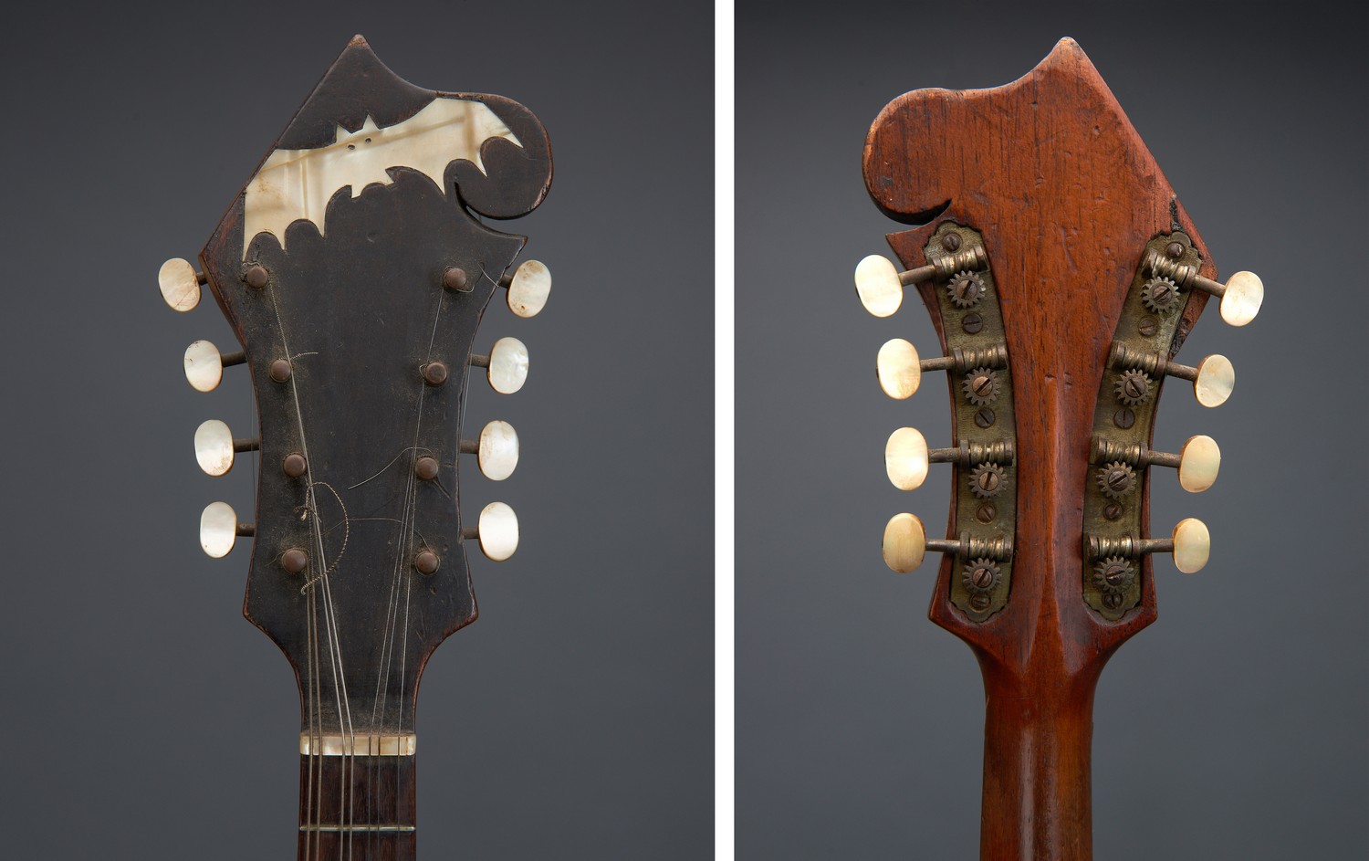 Mother-of-pearl inlaid to fingerboard; the headstock inlaid with a mother-of-pearl symbol of a bat. The pick guard made from tortoiseshell. Paper label to interior 'GIOVANNI CERA / MELBOURNE 1927. No case.