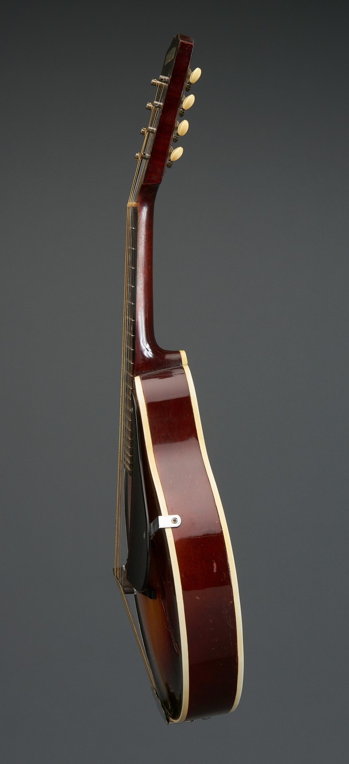 New scratch plate, fingerboard reset. Significant wear to body underneath scratch plate. Minor dents and scratches overall. Stamped 138 to interior- no paper label. frets and strings oxidized.