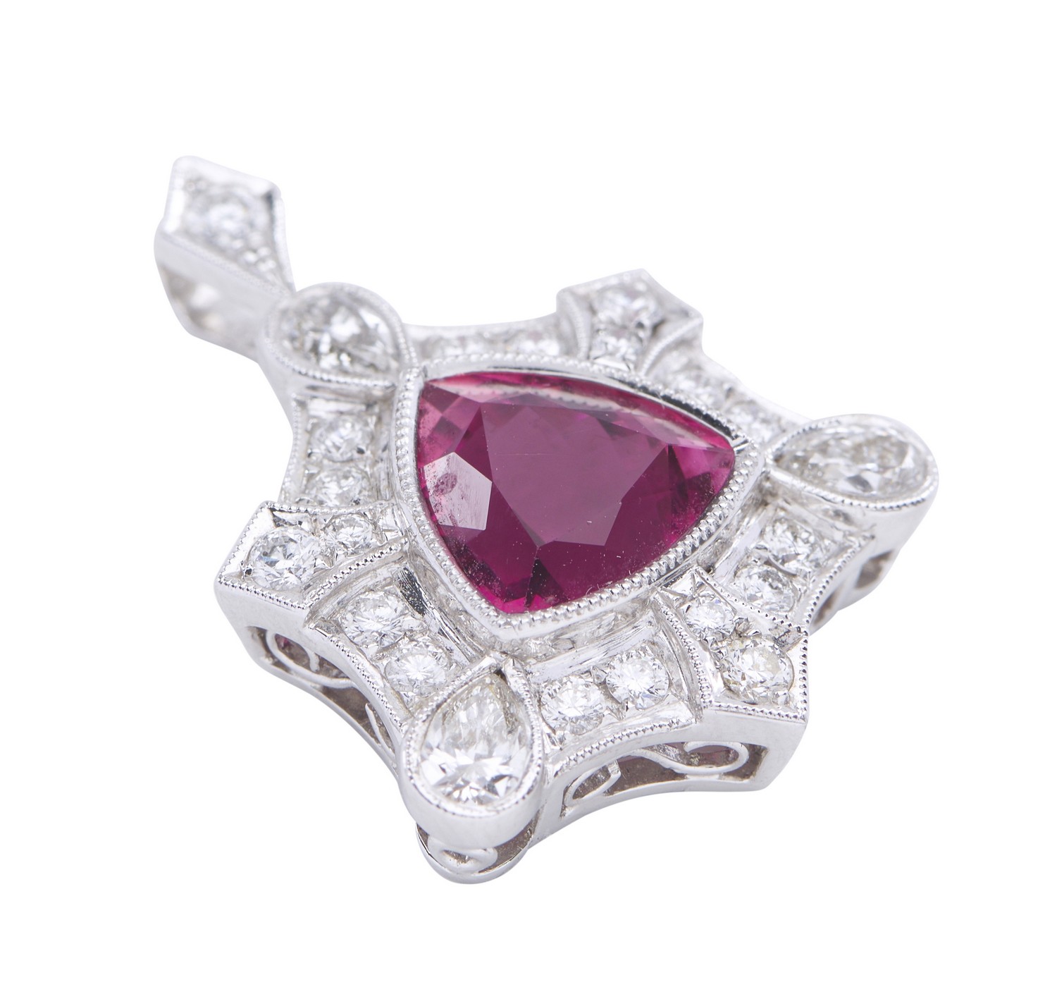 A RUBY AND DIAMOND CLUSTER RING - Featuring an oval ruby weighing 15.41cts, surrounded by twenty four round brilliant cut diamonds t...