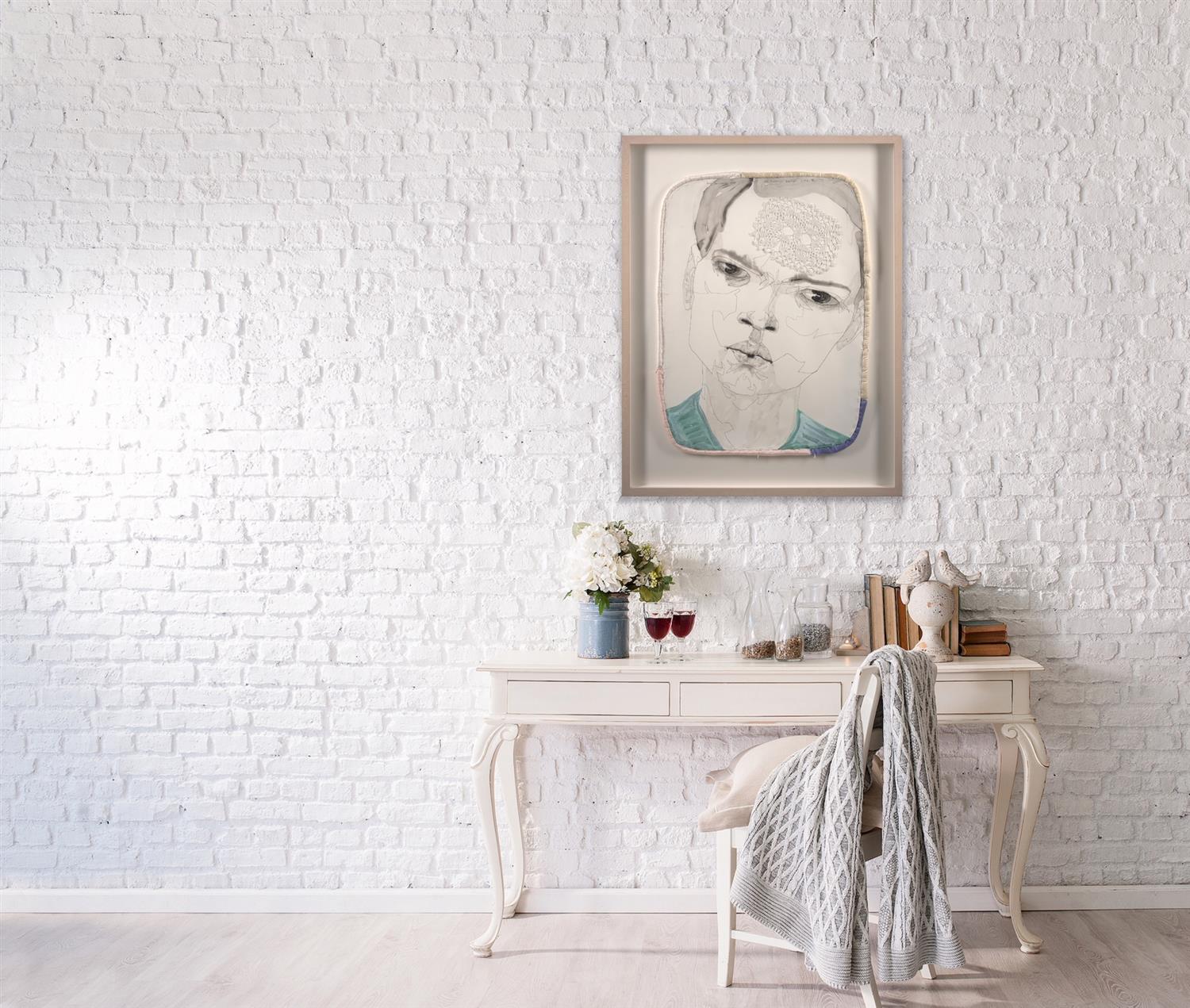 Work in very good condition, no faults to report. Housed in a white washed contemporary box frame. overall size: 100.5 x 78.5 x 6.5cm.
