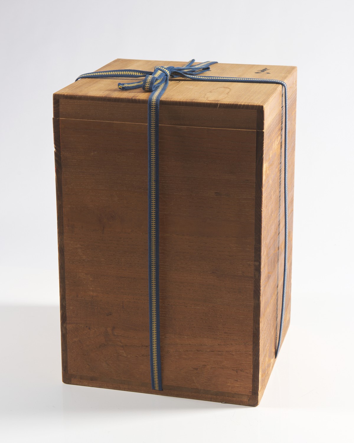 Decorated with iron brown flowers and foliage with further incised details under a vibrant green glaze. Together with tomobako (original signed wooden box).