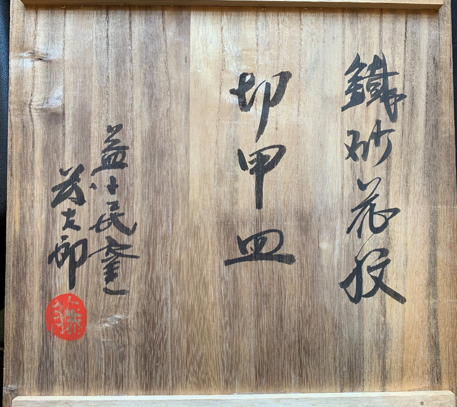 Decorated in iron (tetsuyu) and caramel (ameyu) glazes with an abstracted flower design. With tomobako (original signed wooden box).