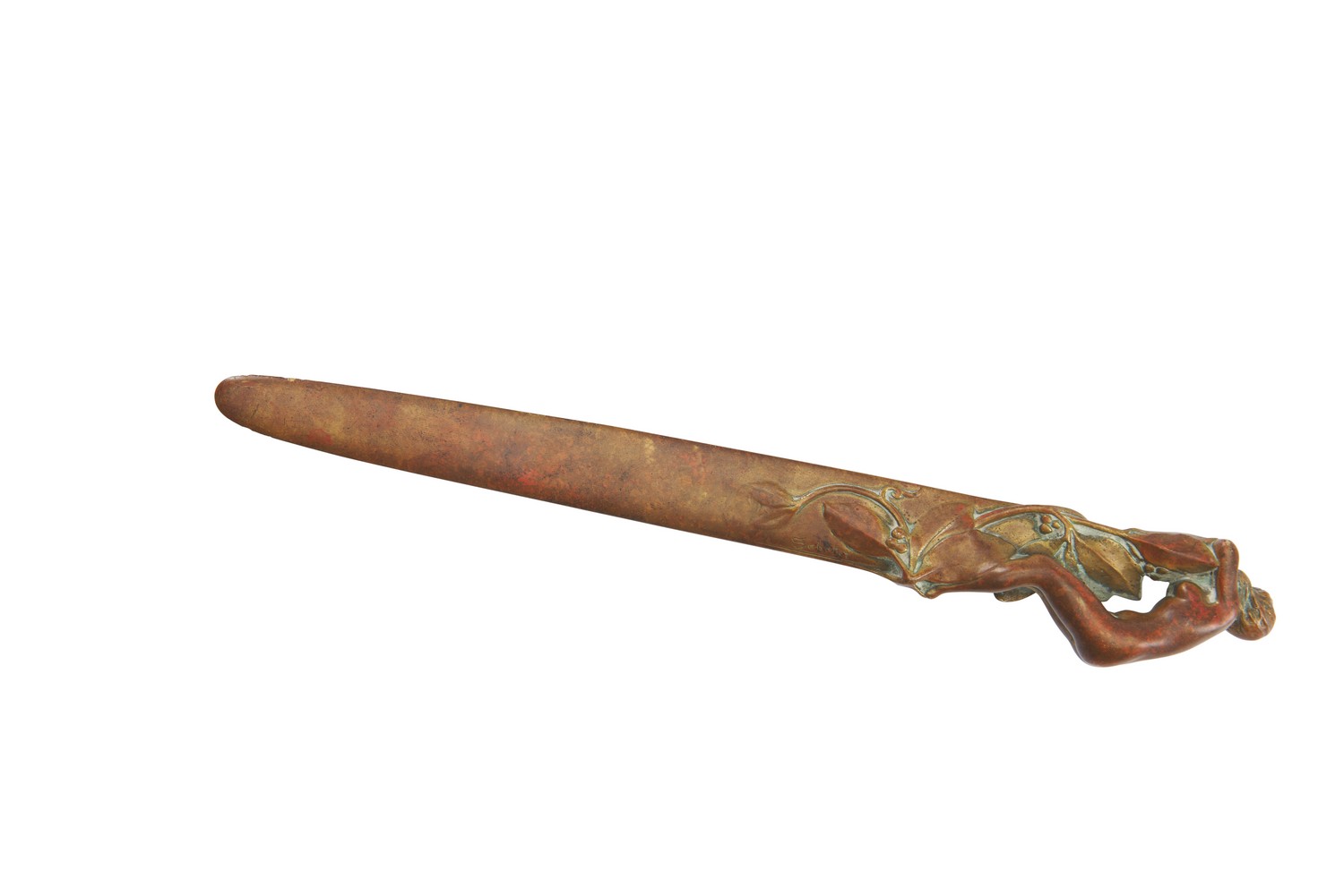 Elegantly modelled as a nude female beauty reposing on a foliate mound. Signed Sabatier to blade.