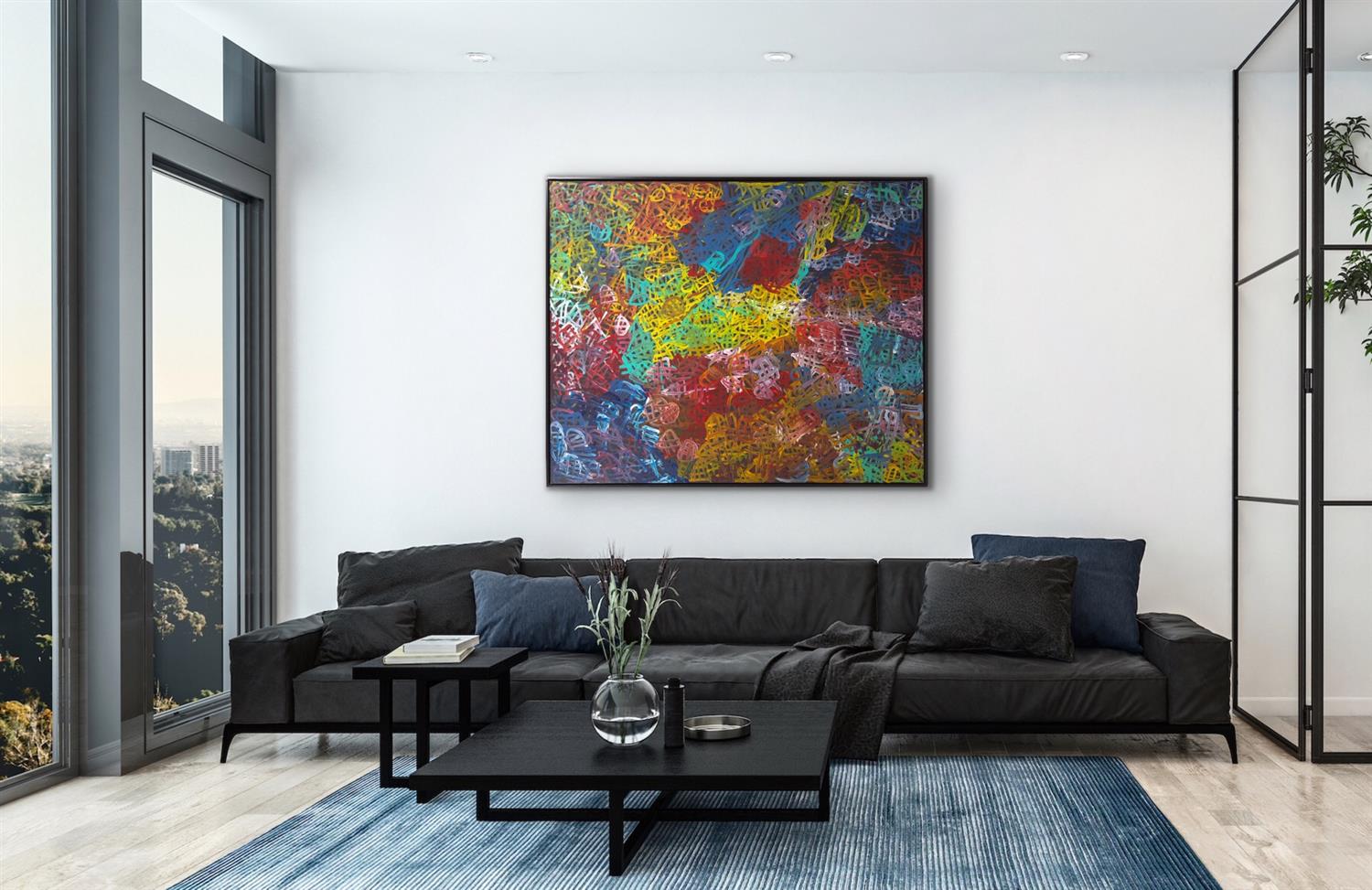 Work in very good condition with no faults to be seen. Housed in a shadow box black frame, measuring to be 153.5 x 123 x 5cm