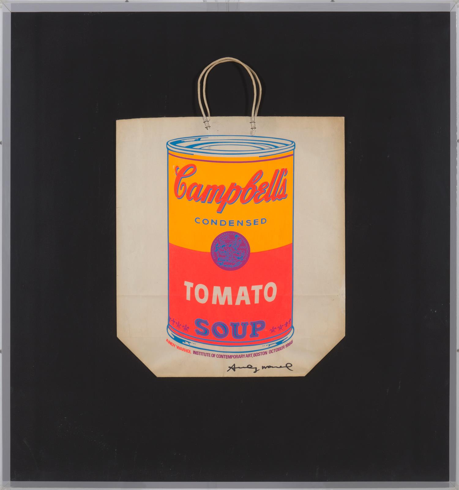 The image of a Campbell's soup can has become synonymous with Andy Warhol. In 1966, an exhibition dedicated to Warhol opened at the Institute of Contemporary Art, Boston, and these screen-printed shopping bags were printed exclusively to commemorate the show.