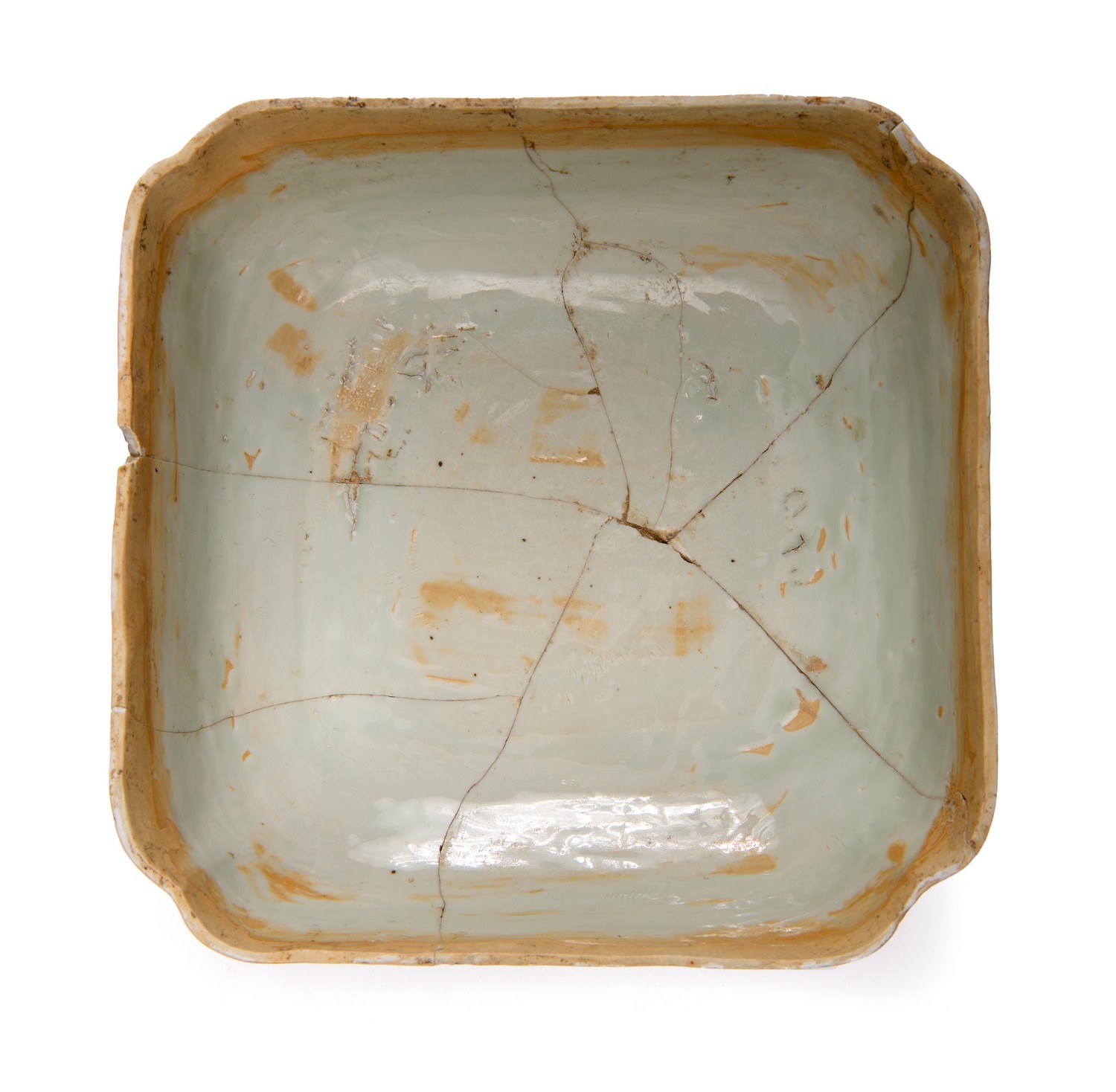 significantly broken and reglued. misfired to a greyish glaze colour.