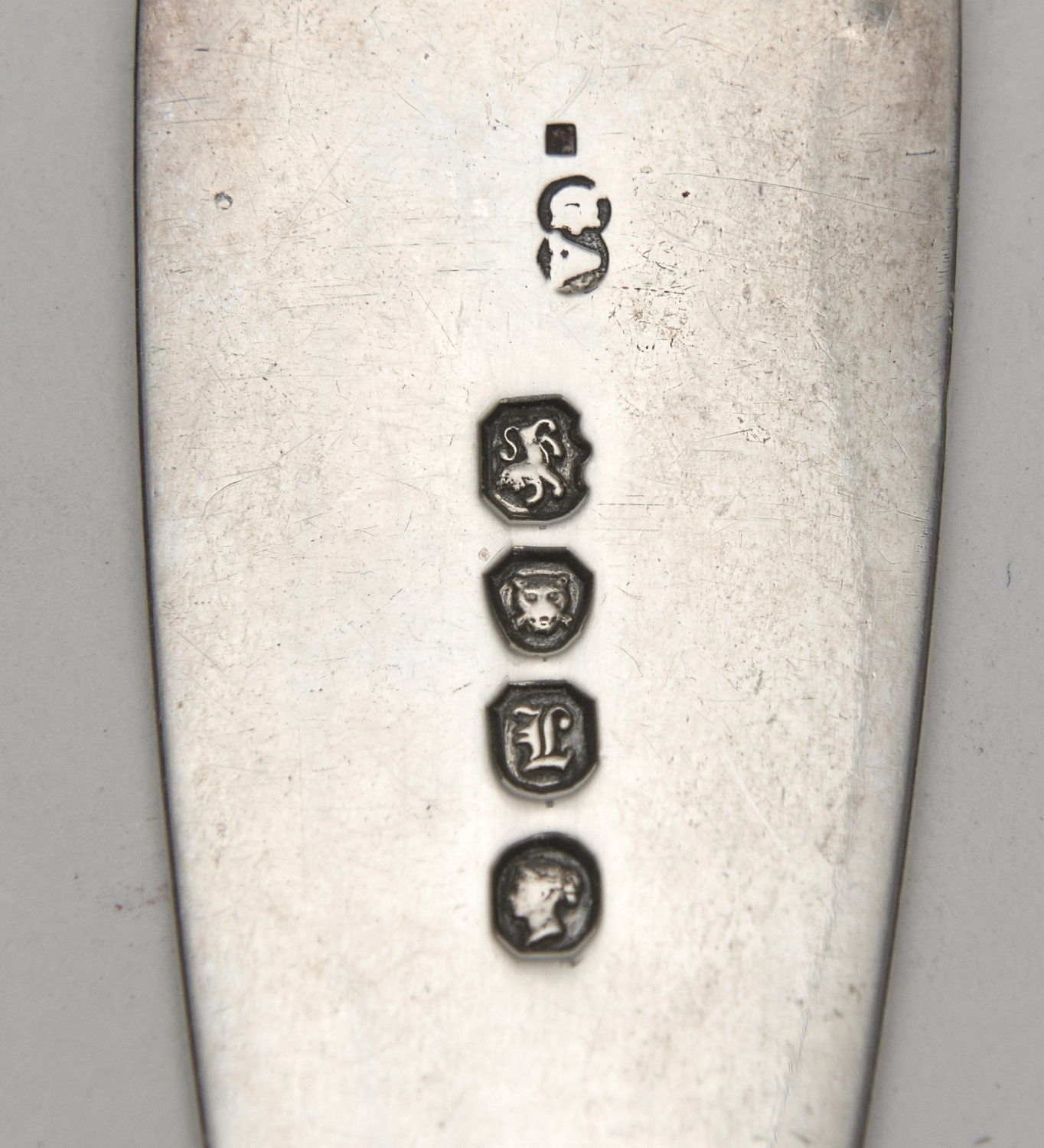 A STERLING SILVER FISH SERVER TOGETHER WITH STERLING SILVER BUTTER KNIFE, THE FISH SERVER APPROXIMATELY 126 GMS