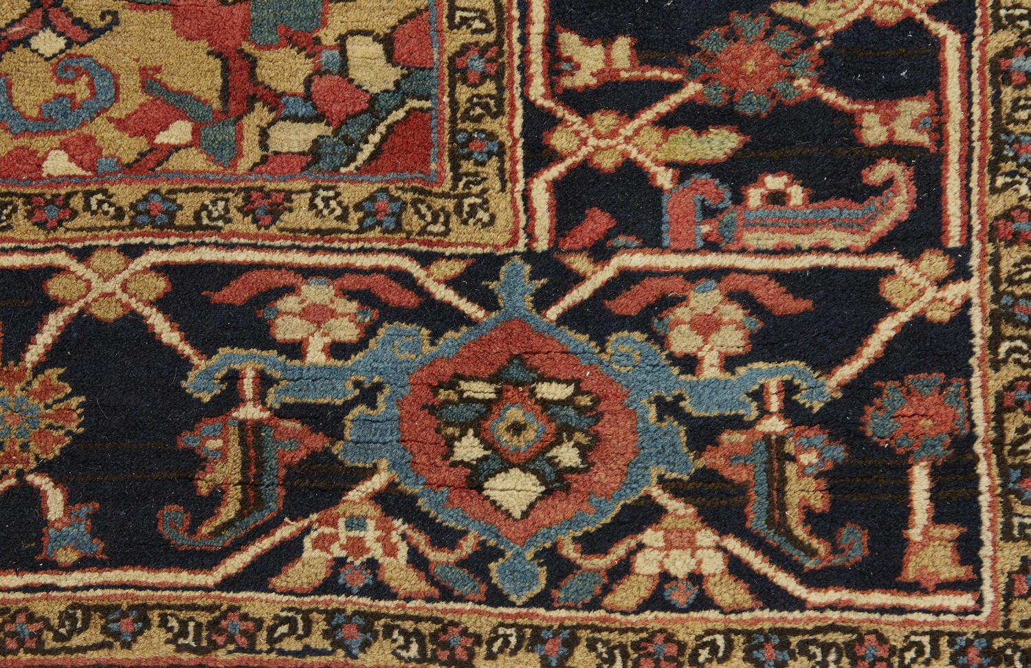 Each with a navy medallion on red ground within mustard spandrels and nave borders, with an all over design of scrolls and flowerheads (2).