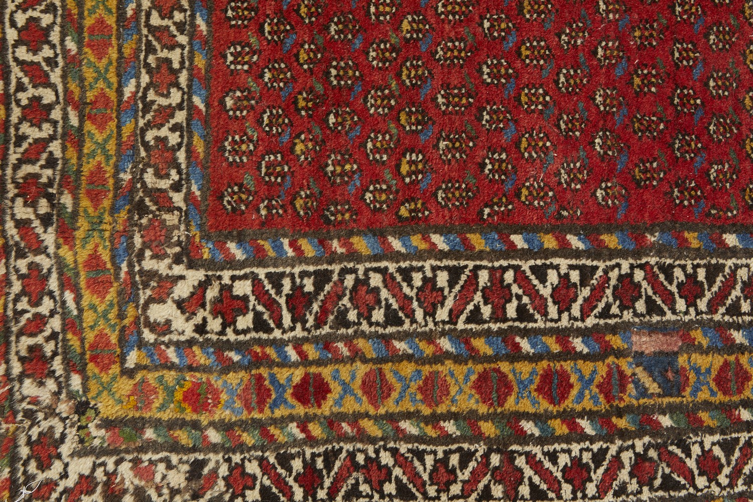 The overall condition is good consistent with age. There have been some old repairs done and some losses to the border