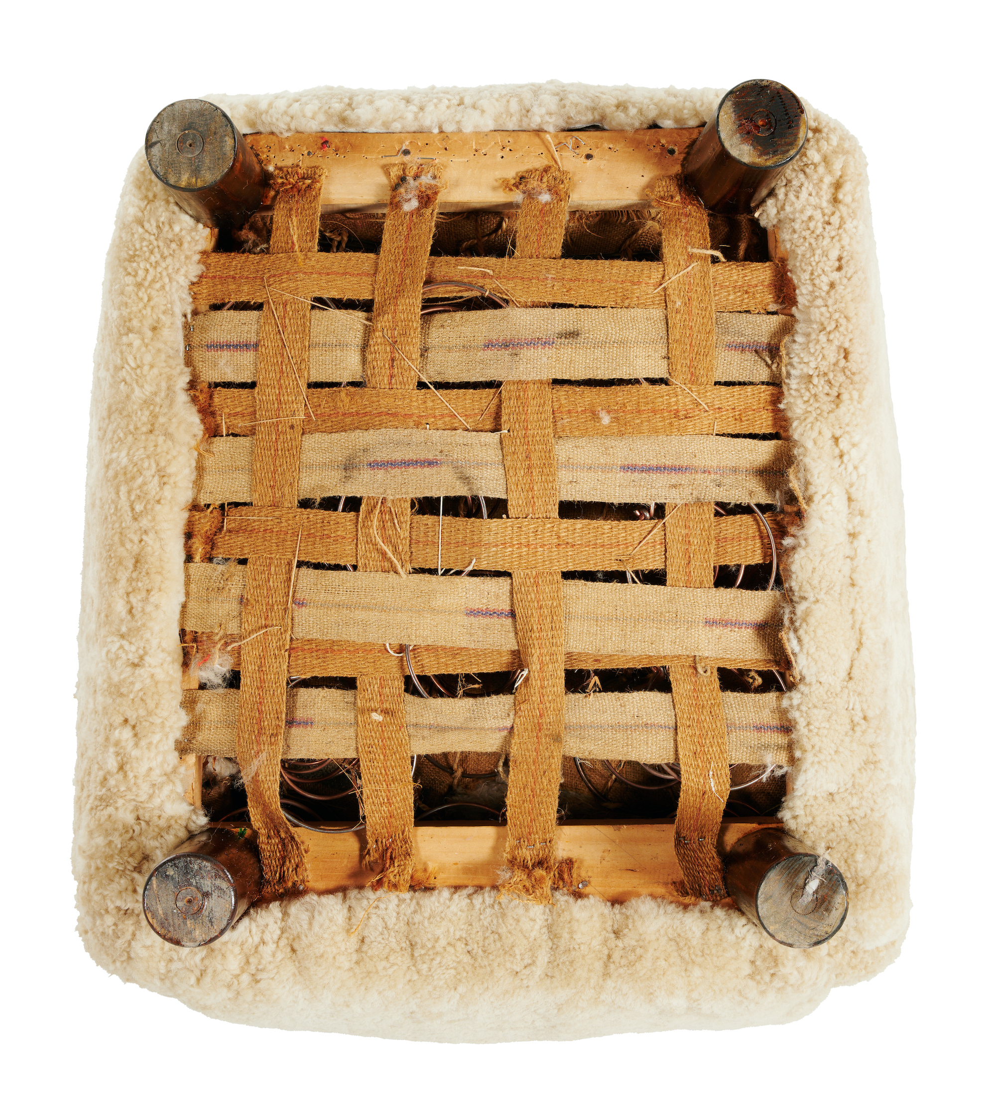 Excellent condition, no losses to sheepskin, minor surface scratches to feet, structurally sound.