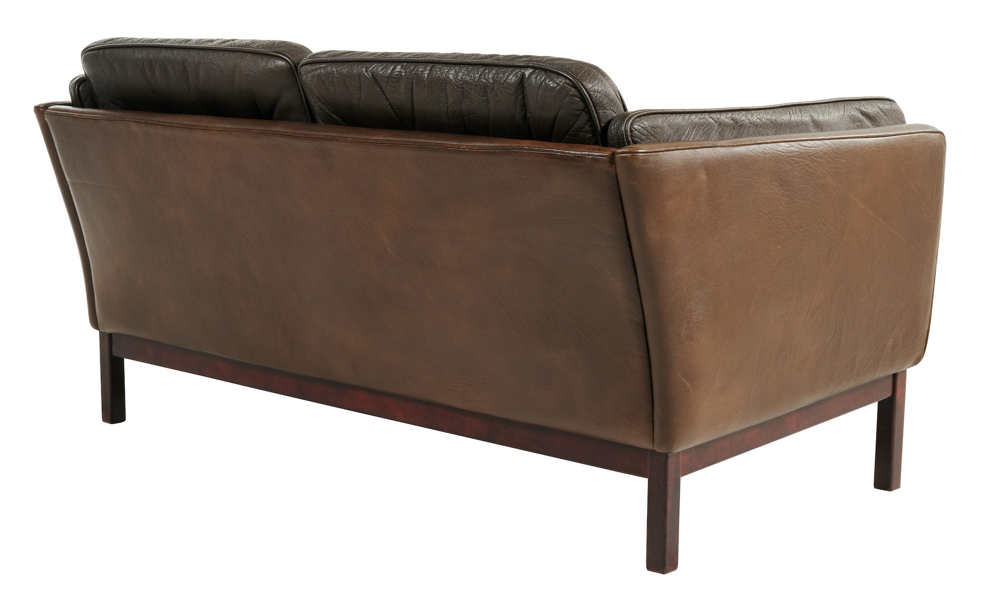 Noticeable tone different in cushions. Could be from different sofas. Leather in worn but good condition consistent with age. Minor surface scratches to base.