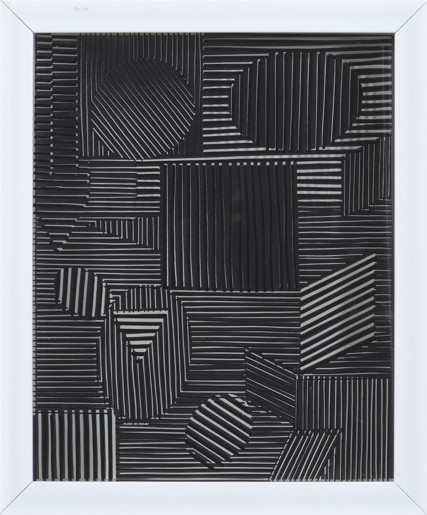 The inner perspex of the work has angled towards to the back of the frame, and is not sitting flush in the frame. Well framed with some scratches and wear.