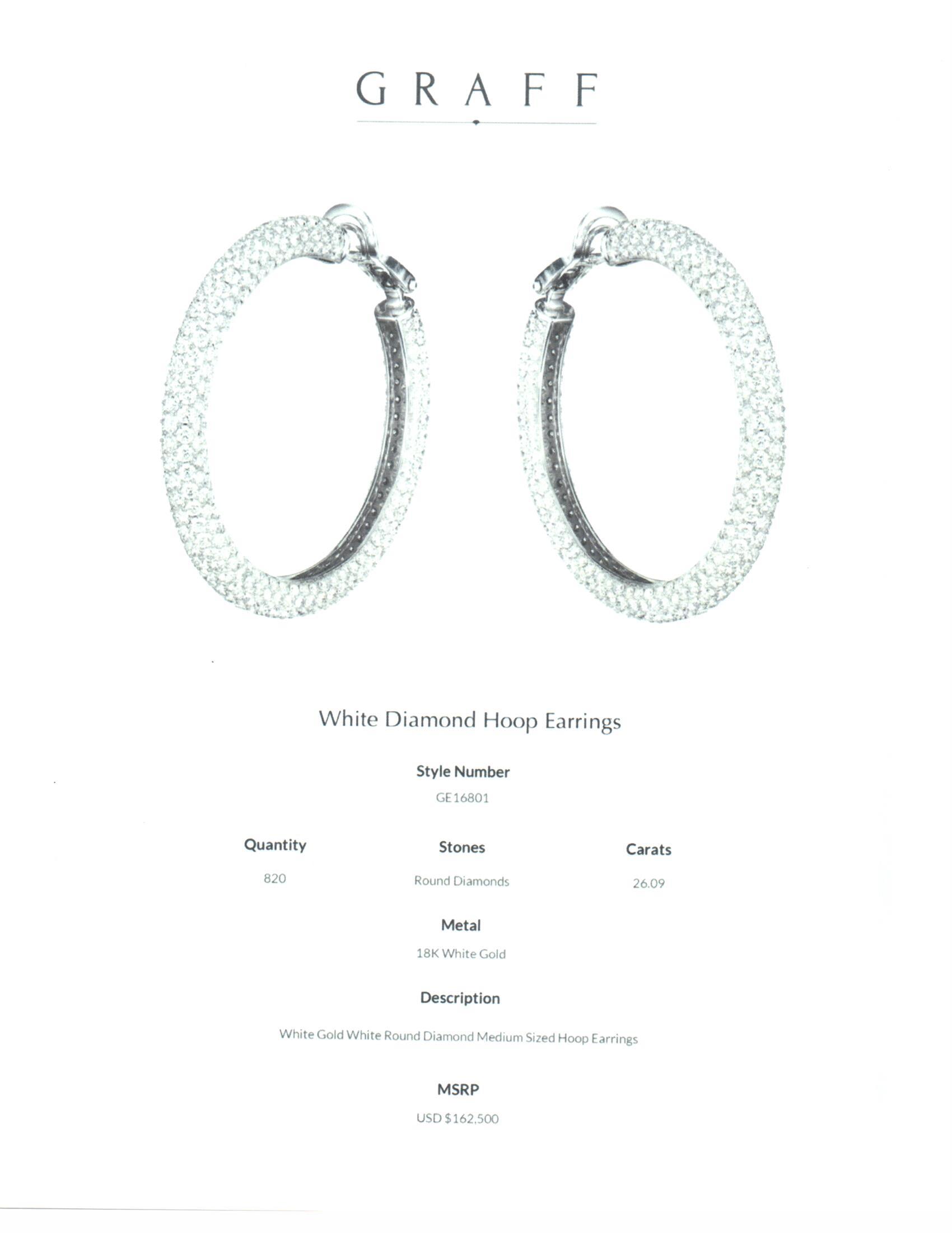 Each designed as a 6mm wide circular hoop pavé-set to the front and inside with brilliant-cut diamonds together weighing approximately 26.09 carats, length approximately 50mm, signed Graff, numbered, post and clip fittings.