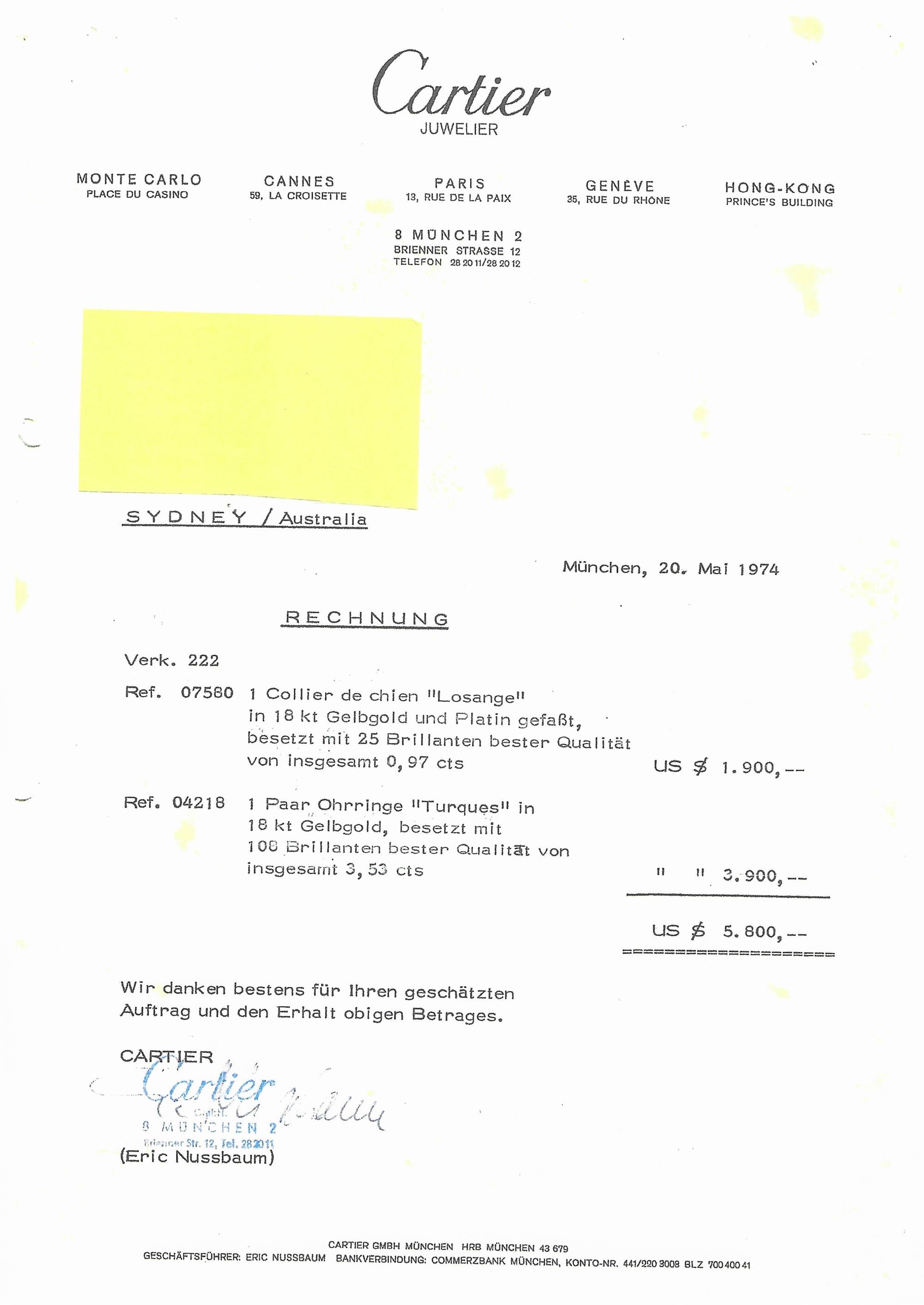 Accompanied by a Cartier facsimile receipt and presentation pouch.