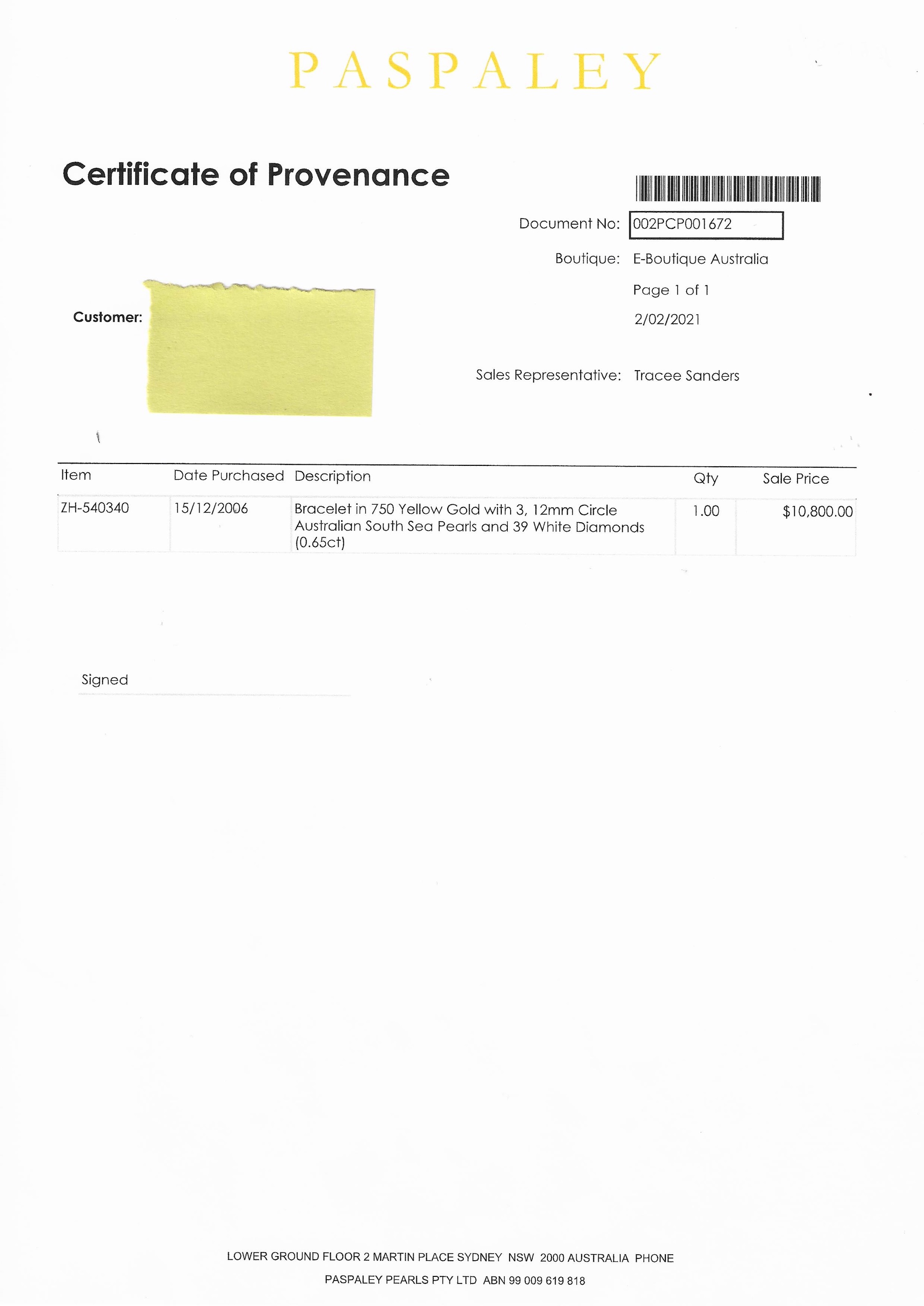 Accompanied by a Paspaley certificate, facsimile receipt and box.