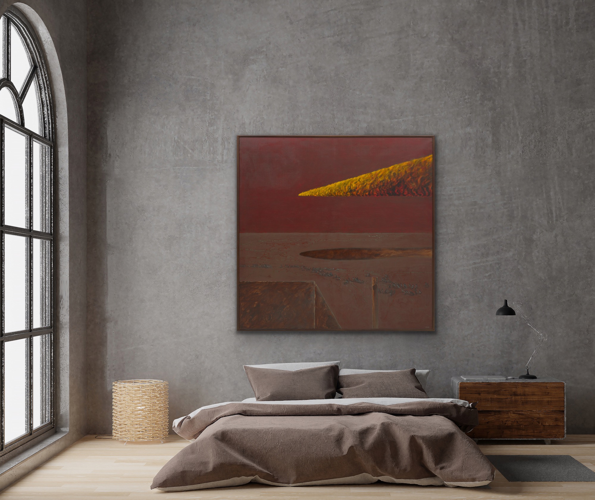 Very good condition. Minor blemishes and imperfections on the surface resembling dust settlement in areas of paint texture/build-up. A small crack in the paint is present in the upper left edge, in line with the frame (2cm in length). Overall size with frame: 182 x 182.5cm