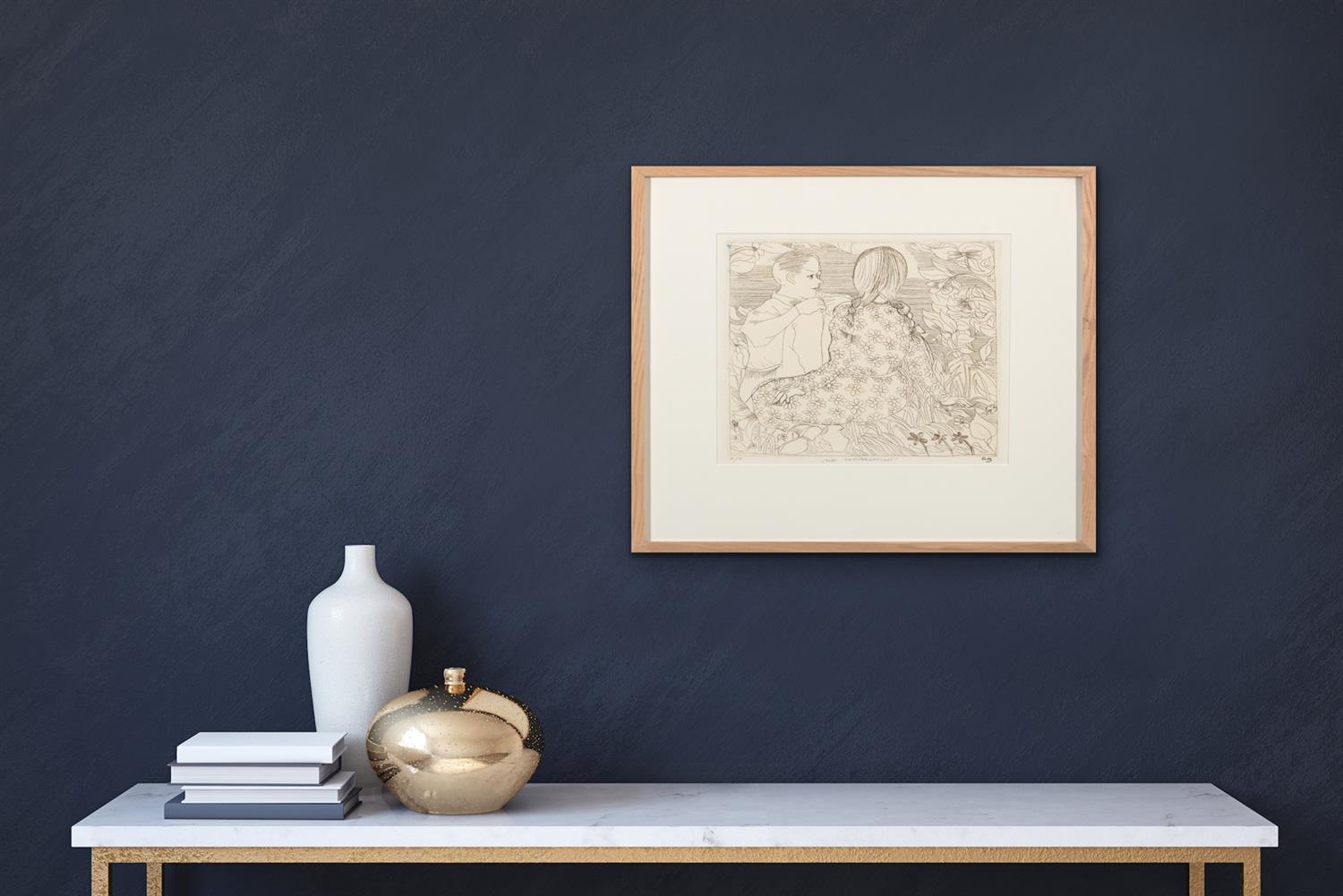 This work is in very good condition with one area to take note of: there is blue pigment evident around the edges of the plate, most likely made at the time of printing. Well framed, measuring 53 x 51cm.