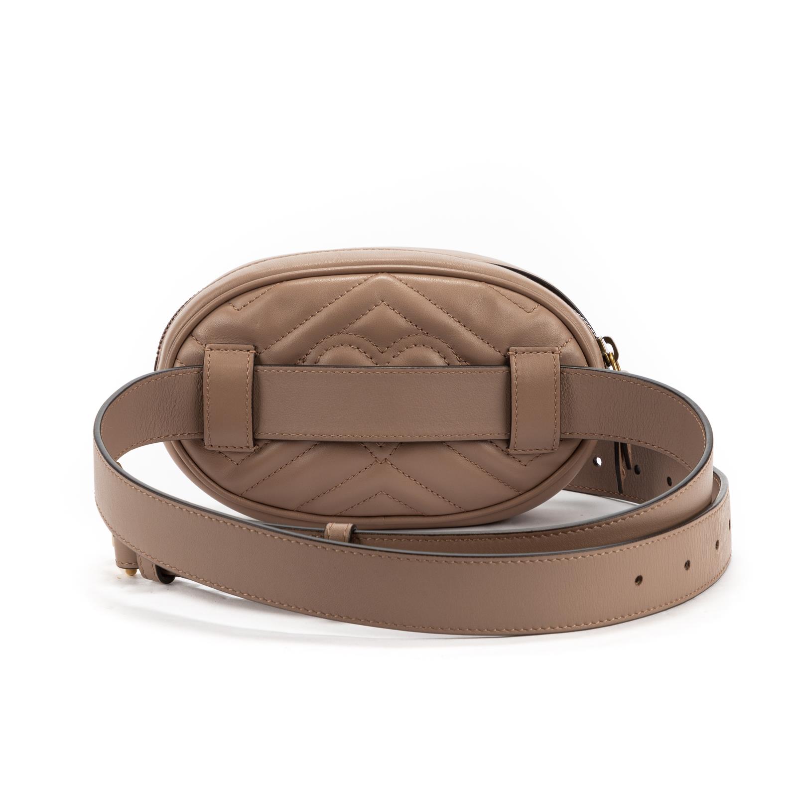 Styled in light pink leather with a light pink leather strap and gold hardware, 17 x 12 x 5cm.