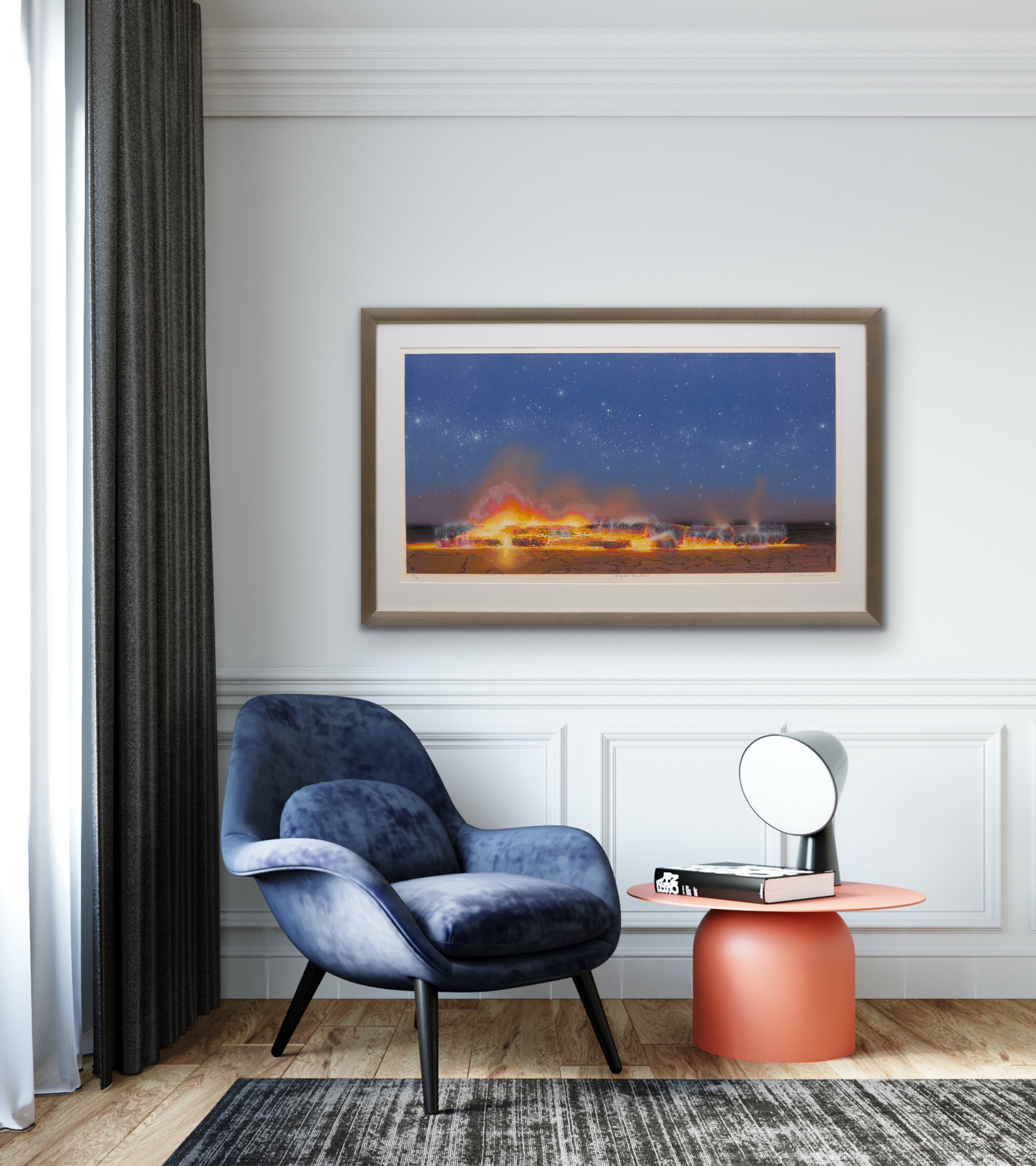 Work is in good condition with no faults to report. Well framed measuring 84.5 x 138cm.