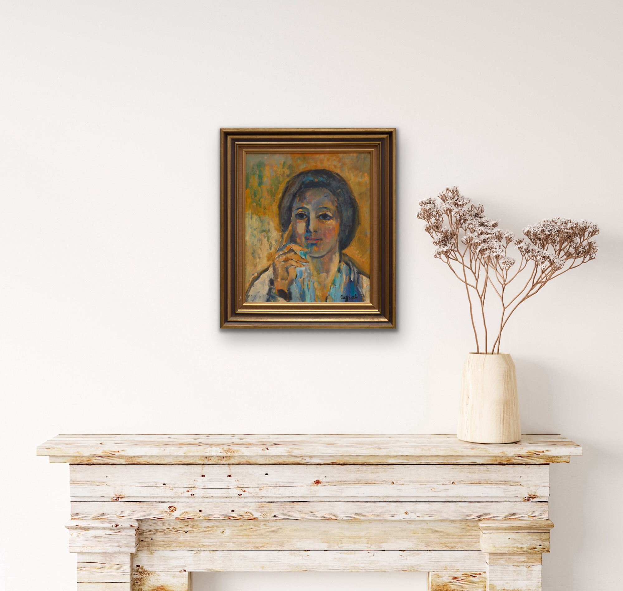 Overall good condition. Minor loss in the figures hair. Overall framed size 50 x 43cm.