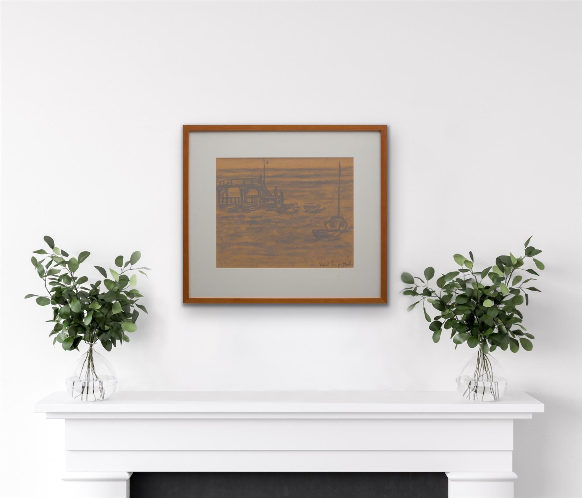 Work is in good condition, there is a small paper abrasion upper right edge and a small stain lower right corner. Frame size 57 x 64cm.