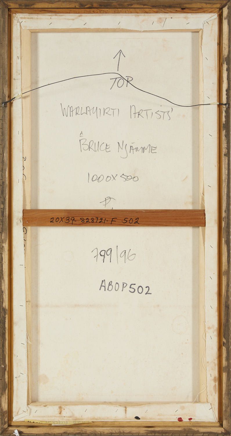 inscribed verso with artist's name and Warlayirti Aboriginal Artists Corporation cat. no. 799/96