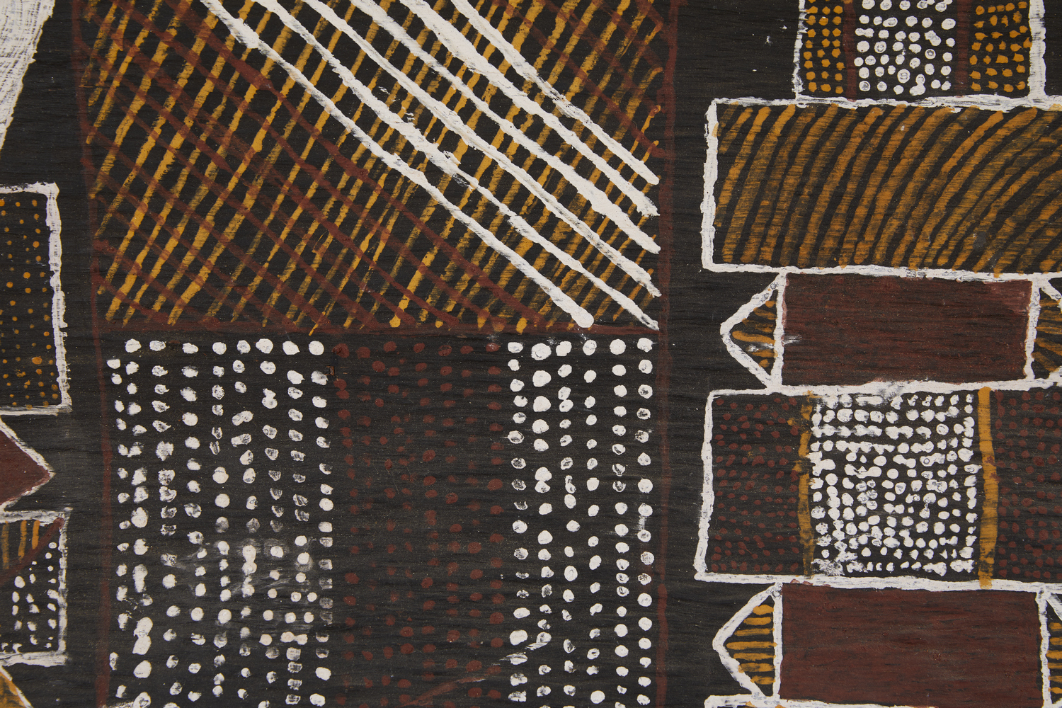 THOMPSON NGANJMIRRA (born 1954) Namarrkon, The Lightning Spirit 1989 natural earth pigments on eucalyptus bark