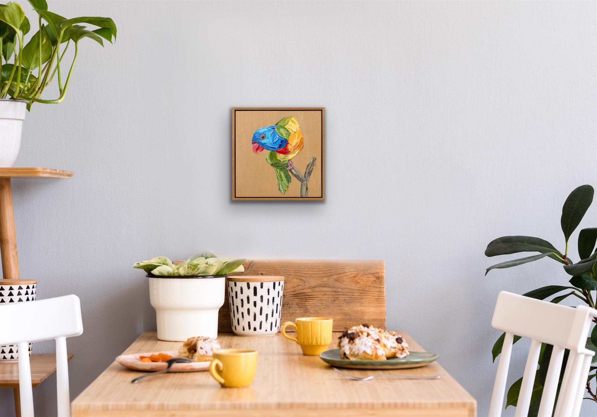 signed, titled and dated verso: Precision Balance / Rainbow Lorikeet / 2017 / Jodie Wells