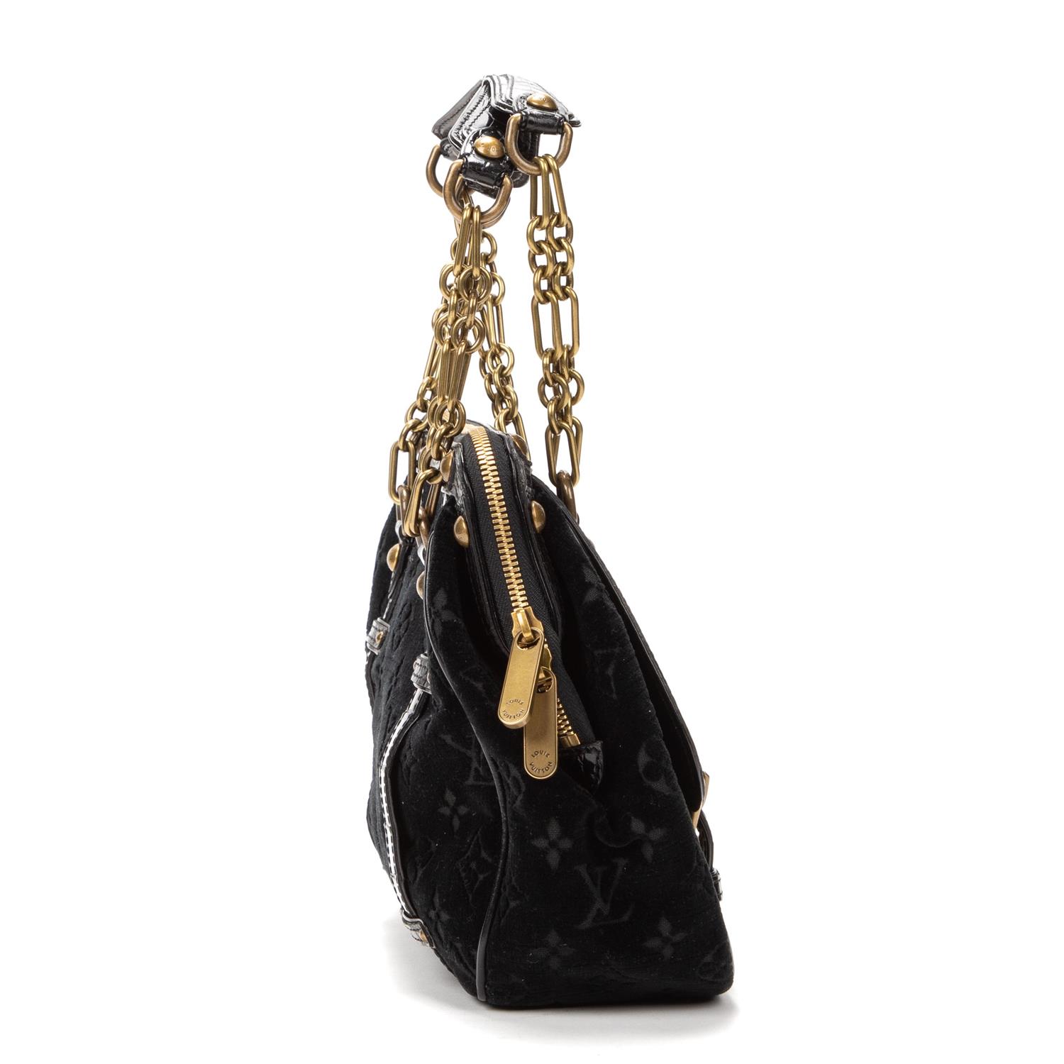 Styled in black monogram velvet with black crocodile and chain handles and gold tome metal hardware, 26 x 22 x 9cm.