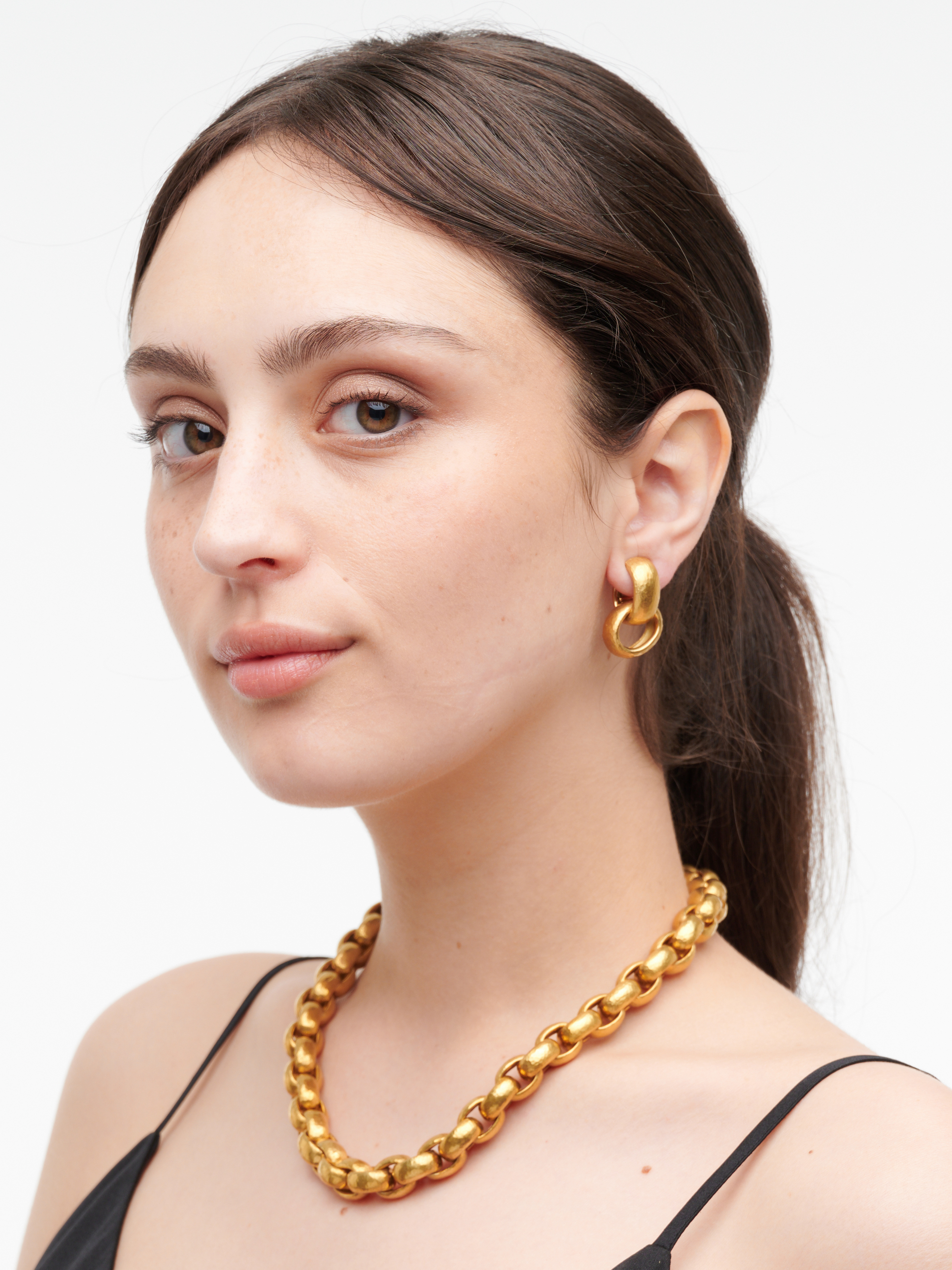 Comprising a chain necklace of hammered links completed by an invisible box clasp, length approximately 440mm; the earrings ensuite, comprising a hammered link, with detachable second link, to clip fittings, length approximately 30mm, both signed Paloma Picasso, Tiffany & Co.