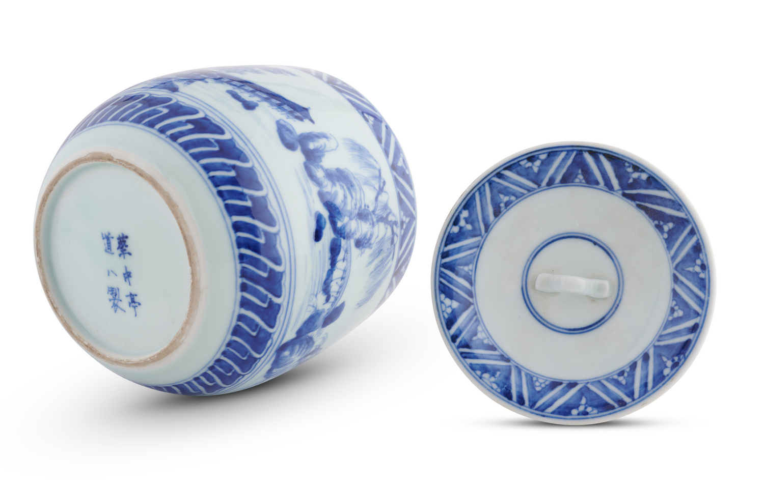 Of ovoid form decorated with a Chinese literati style lakeside landscape with pavillions, bridges and islands. Six character mark to the base reading 'Kachutei Dohachi zo' for Dohachi IV.