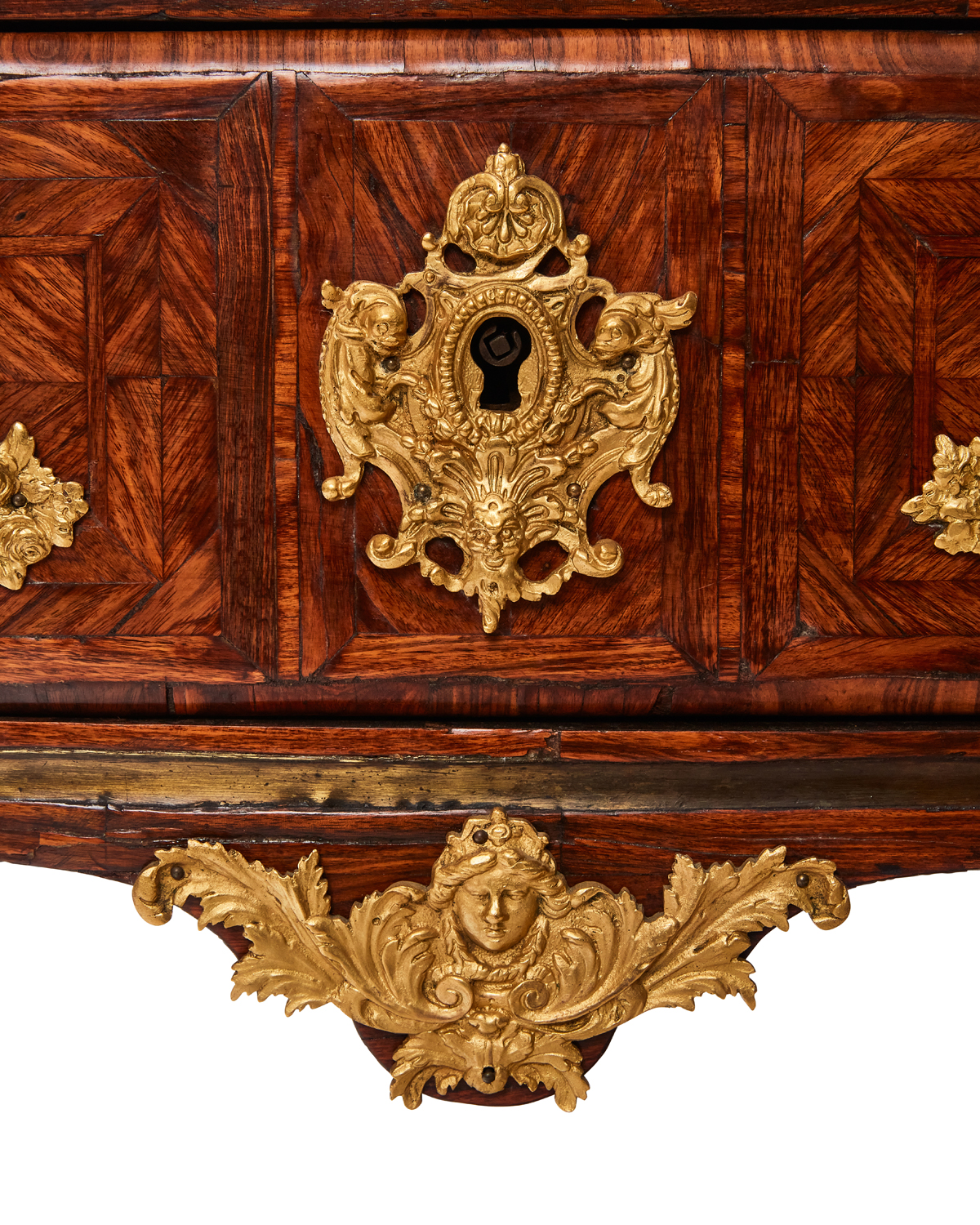 A REGENCE ORMOLU MOUNTED KINGWOOD PARQUETRY COMMODE