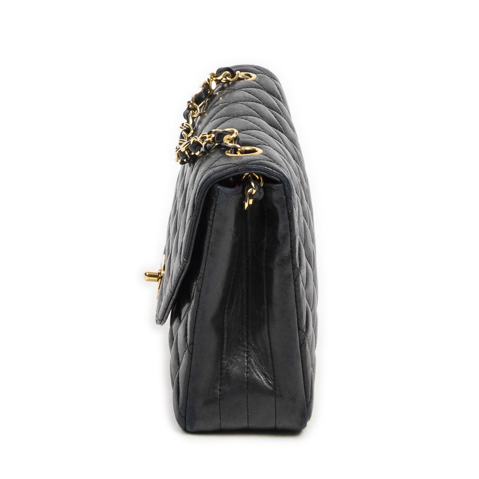 CHANEL, VINTAGE STRAIGHT SINGLE FLAP SHOULDER BAG - Styled in black quilted lambskin leather with interlaced chain shoulder strap an...
