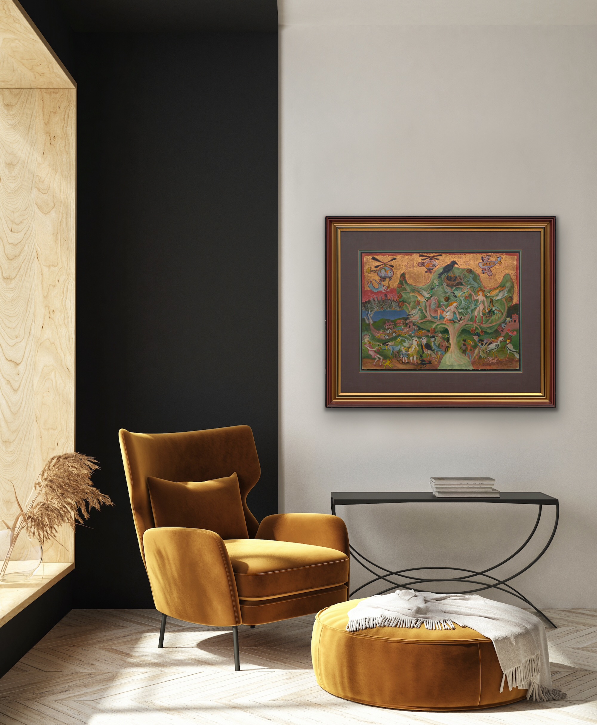 watercolour, gouache and gold leaf on paper