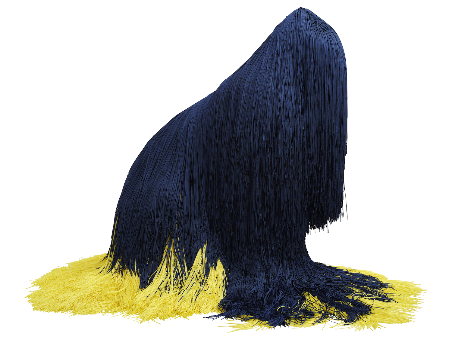 "Troy Emery's practice is imbued with tactility that points to the role of animals and their forced complicity within contemporary life. Emery's life-size sculptures of animal forms include the usual domesticated subjects of dogs and cats but are also joined by ones that were considered 'wild' such as sloths, lions and foxes. The sculptures are often presented in bright colours and assume postures that are unsettlingly familiar, as if they could shift and breathe life at any moment. These forms however are composed of intricately placed layers and layers of textile, not flesh and blood. They remain faceless, a hint to their agency stripped through anthropocentric destruction and possession."
