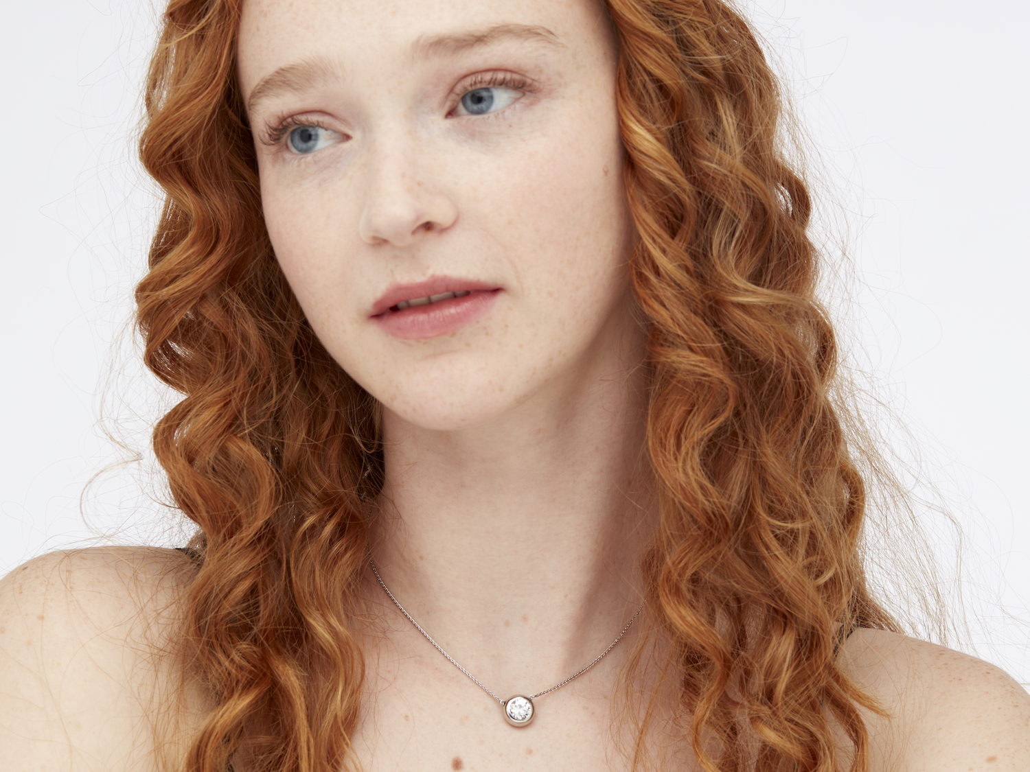 Bezel-set with a solitaire brilliant-cut diamond weighing approximately 1.70 carats, to an integral fine trace chain completed by a parrot clasp, length approximately 375mm.